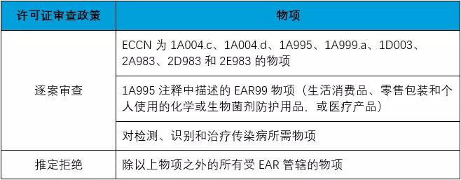(1)對受美國《出口管制條例》(EAR)管控的所有物項施加許可要求;(2)對受EAR管控的所有物項采取推定拒絕的許可審查政策。