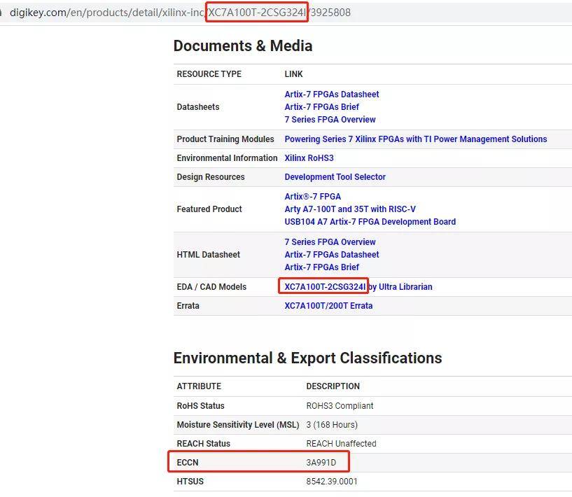 2. 賽靈思(Xilinx)官網(wǎng),ECCN查詢頁。